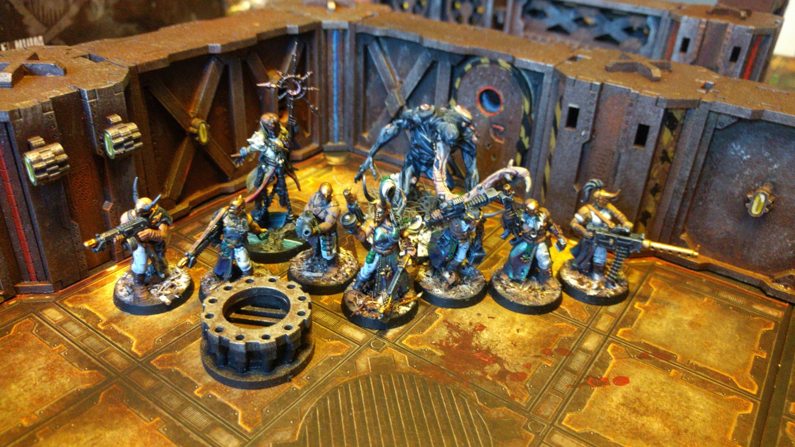 But tonight, they will be played by their plucky offspring, a band of eight Orlocks with a good mix of medium range firepower, a harpoon gun and the boltgun of their leader, Pootle II, tonight representing a special client from the Unknowable faction. Versatile and resilient, they might not have the special options or abilities the other teams have, but they're certainly not to be sneezed at.