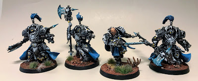 My dodgy Latin isn't quite up to the task of working out what Allarus might actually mean, other than the word GW picked to designate Custodian Terminator armour. It's not really important - these guys are massive, real chonkers! There's something in the slightly snow-cone shaped helmets of standard Custodians that I'm not madly keen on, but these guys don't have it and have won me over.