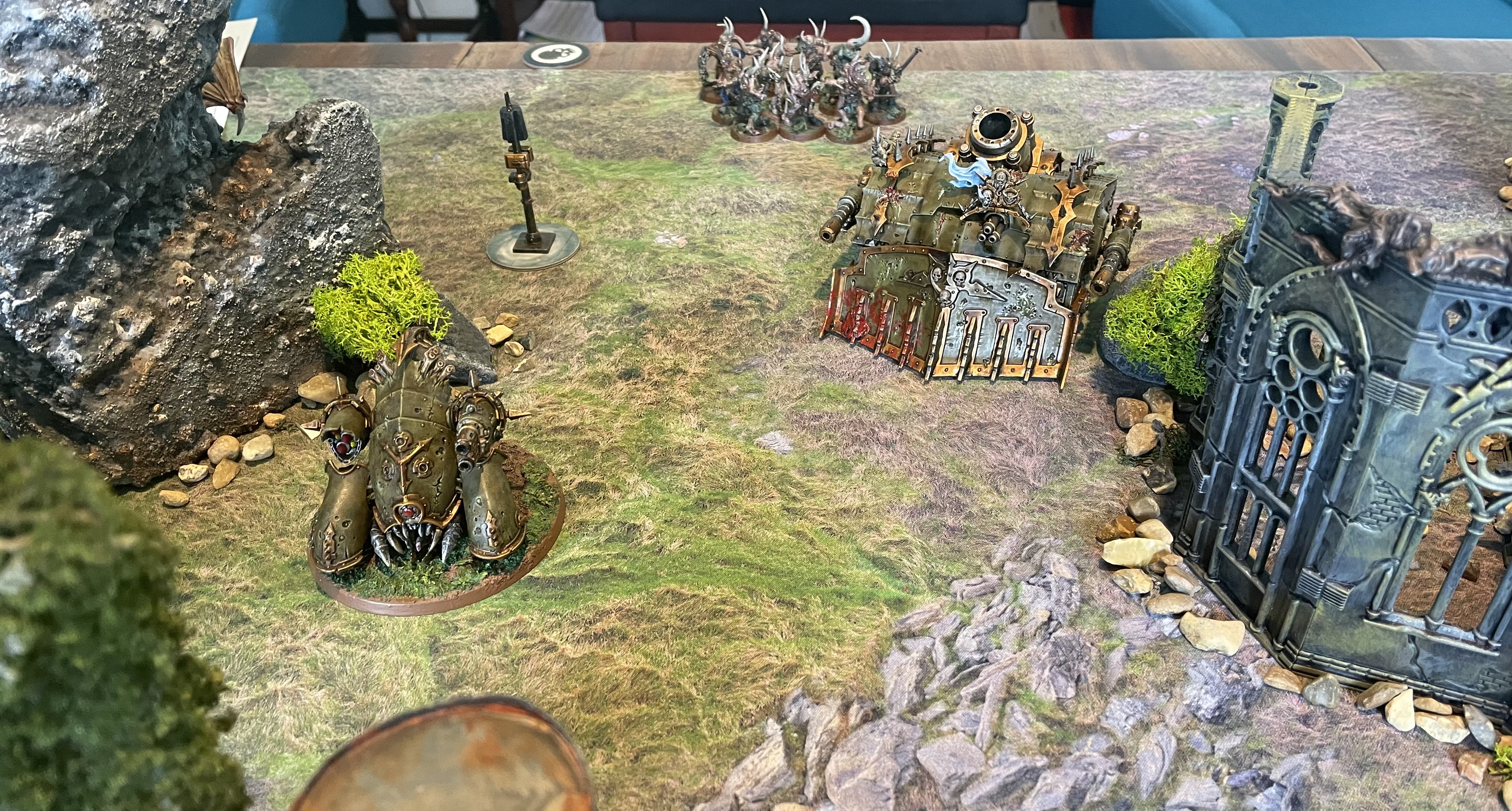 And on my left flank, the second Rhino holding the other Plague Marines is ready to move to claim the righthand objective.