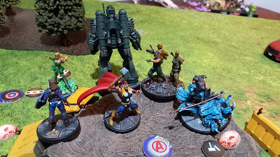 I was even more impressed with the Asgardians - they can rack up power quickly, and have a lot of abilities to use. Thor is naturally the quarterback, but Enchantress and Loki bring some nice twists to the play. Captain Mar-Vell/Heimdall didn't really shine - but he did have some nice movement play, and I was targeting him as the only one I could realistically damage!
